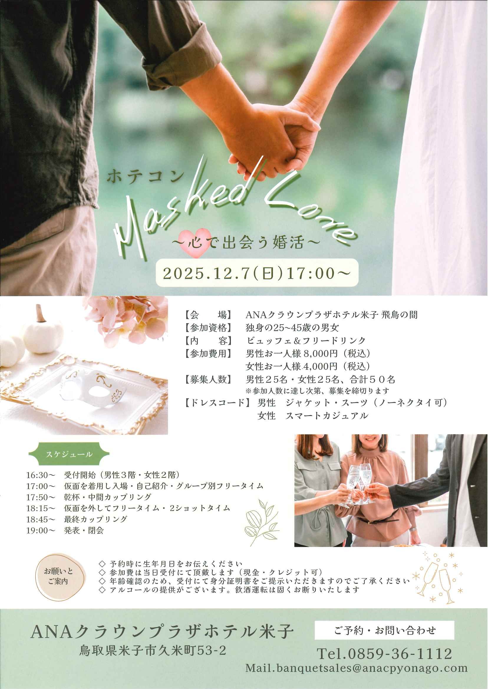 既婚者の方お一人ではご参加いただけませんので、未婚の方と一緒にご参加ください。